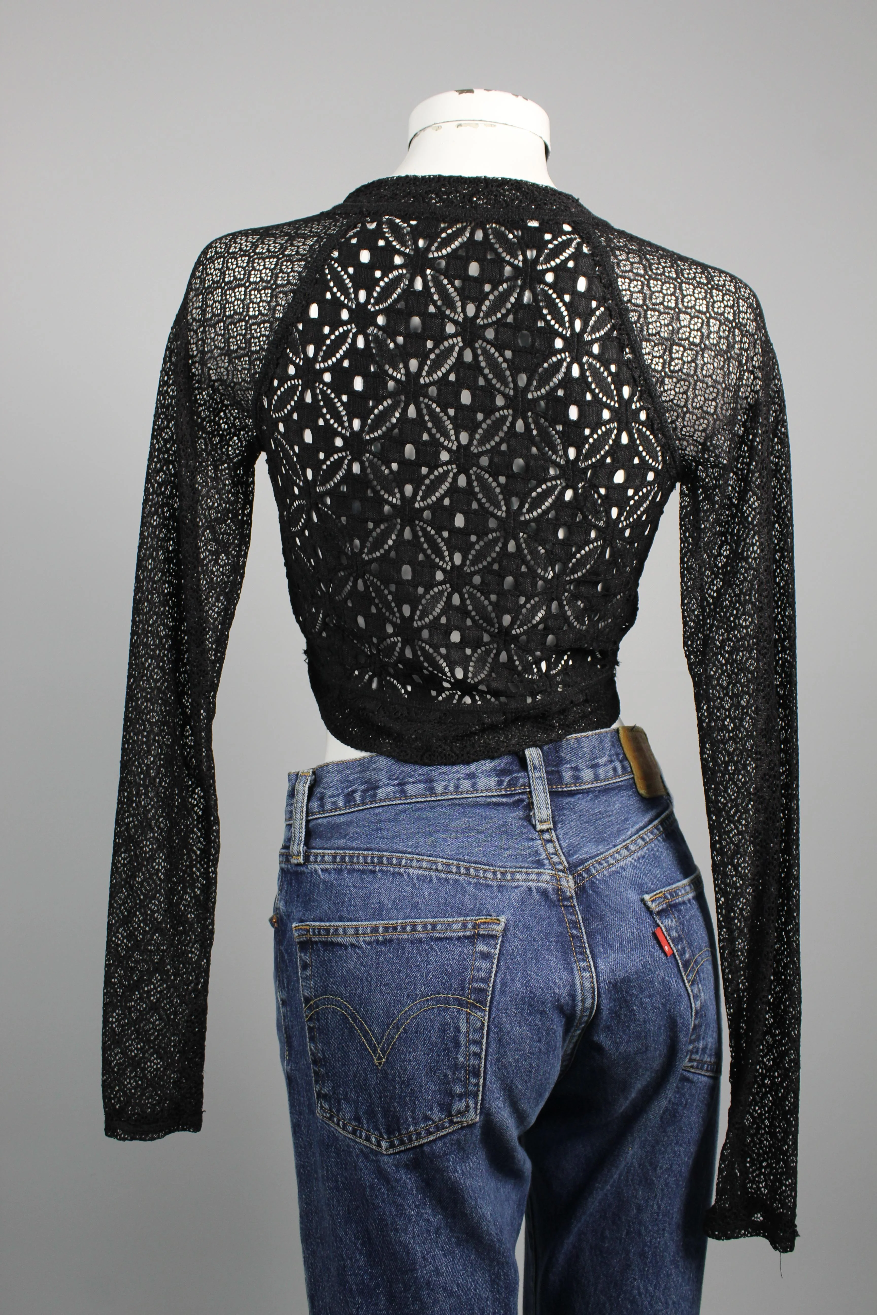 TOP, COLOR NEGRA, MARCA FREE PEOPLE, TALLA S, DE POLIÉSTER, TEMP. OTOÑO-INVIERNO, 38CM (ANCHO DE HOMBROS) X 50CM (ANCHO DEL PRODUCTO) X 36CM (LARGO DEL PRODUCTO), PRODUCTO CON DESGASTE.