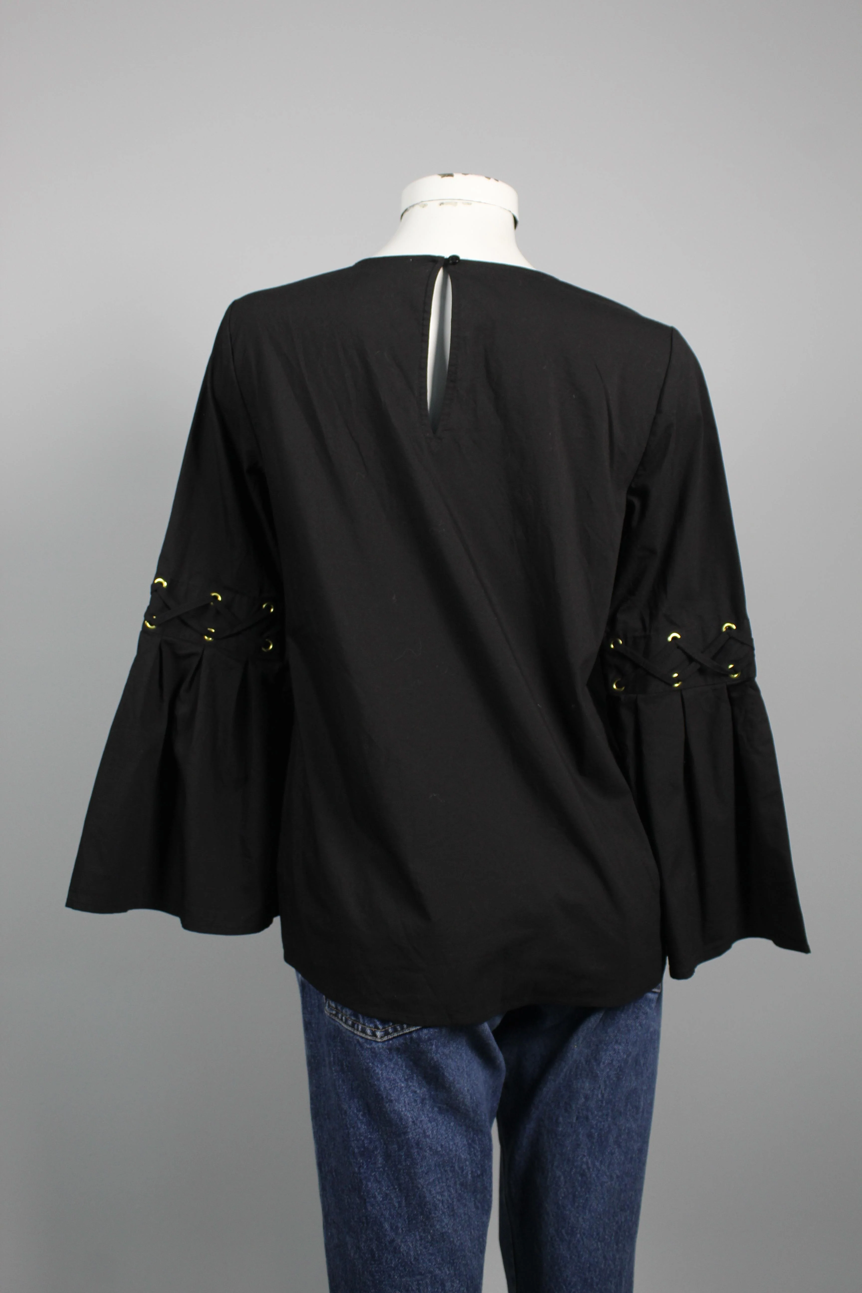 TOP, COLOR NEGRO, MARCA MICHAEL KORS, TALLA S, DE ALGODON/POLIESTER, TEMP. OTOÑO-INVIERNO, 38CM (ANCHO DE HOMBROS) X 50CM (ANCHO DEL PRODUCTO) X 63CM (LARGO DEL PRODUCTO), PRODUCTO CON DESGASTE.